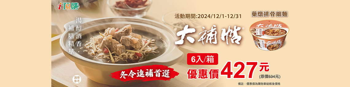 大補帖藥燉排骨細麵(箱)結帳特惠427元