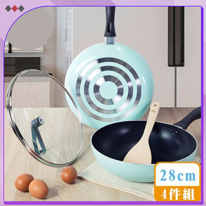 鍋寶28cm金鑽不沾鍋4件組(蒂芬妮藍)