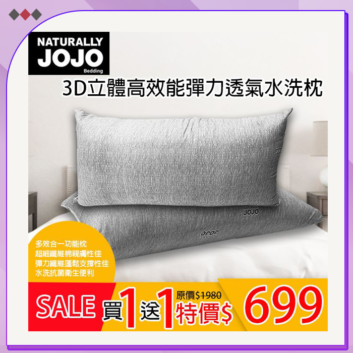 【買1送1】Naturally JoJo台灣製造3D立體多效能彈力水洗枕