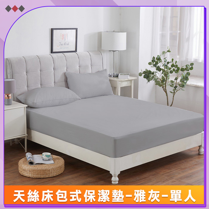 【寢室安居】護理級 天絲防水防蹣抗菌床包式保潔墊-單人(雅灰)