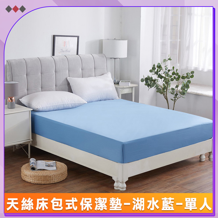 【寢室安居】護理級 天絲防水防蹣抗菌床包式保潔墊-單人(湖水藍)