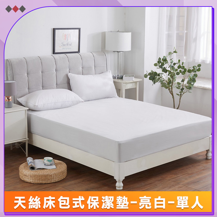 【寢室安居】護理級 天絲防水防蹣抗菌床包式保潔墊-單人(亮白)