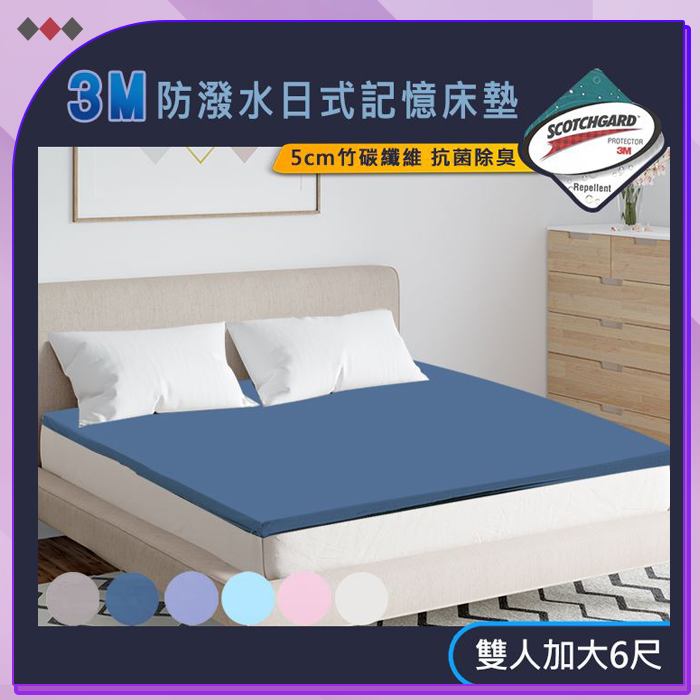 5CM防潑水日式記憶摺疊床墊-雙人加大-6尺(多色任選)
