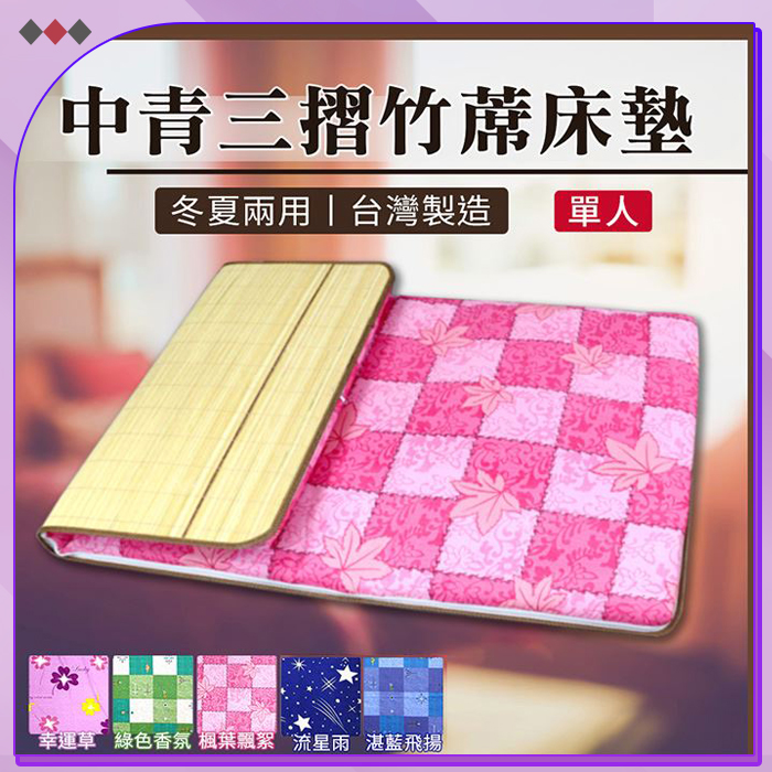 【You Can Buy】冬夏雙用途中青三摺竹蓆床墊-單人(多色)
