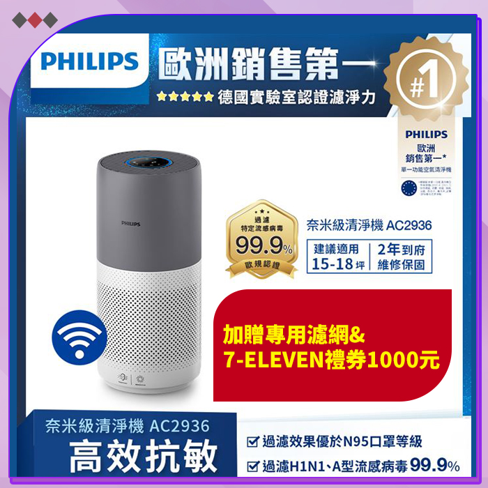 【飛利浦 PHILIPS】奈米級空氣清淨機-AC2936