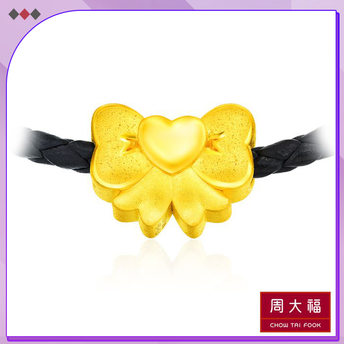 【周大福】幸福緣點系列 愛心蝴蝶結黃金路路通串飾/串珠