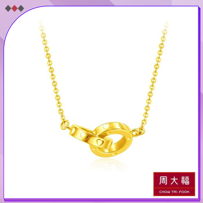 【周大福】LIT系列 5G心型雙圈黃金項鍊(15吋)