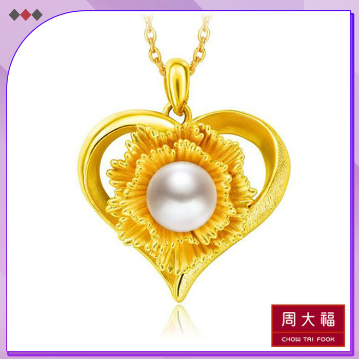 【周大福】心型珍珠花黃金吊墜(不含鍊)