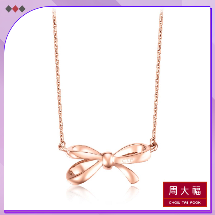 【周大福】愛在心弦系列 閃耀小巧蝴蝶結18K玫瑰金鑽石項鍊