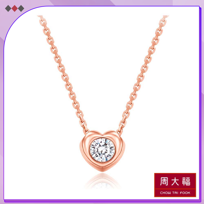 【周大福】小點滴系列 愛心造型18K玫瑰金鑽石項鍊