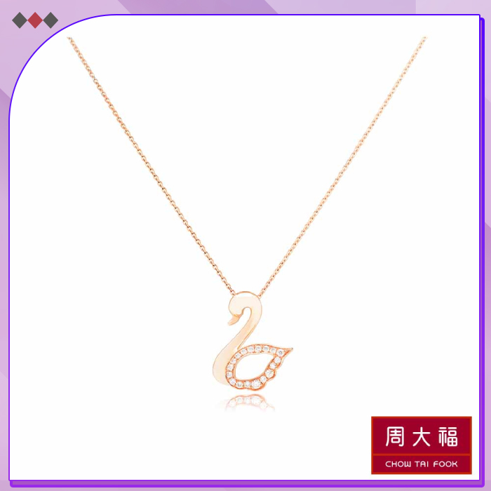 【周大福】婚嫁系列 璀璨天鵝造型18K玫瑰金鑽石項鍊