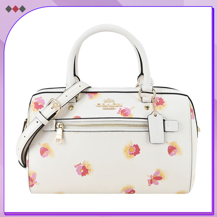【COACH】立體馬車花卉印花兩用波士頓包(白)