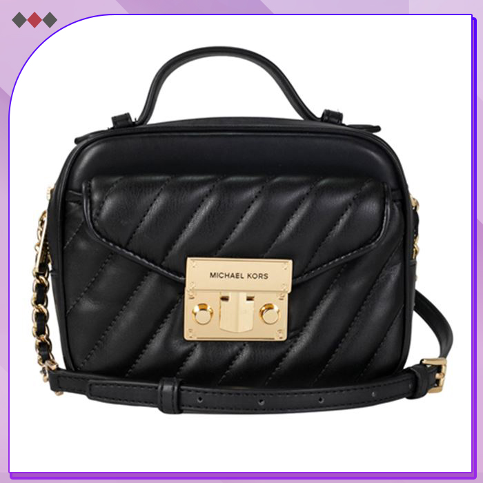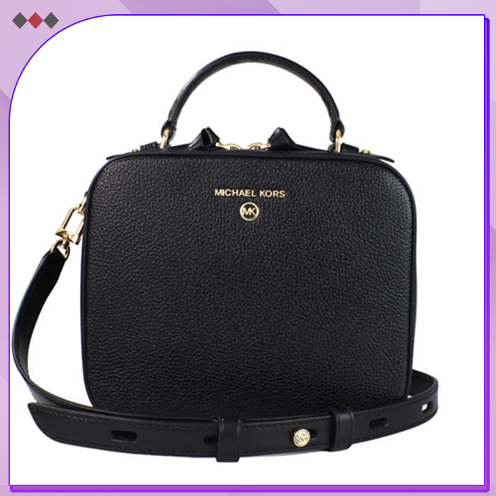 【Michael Kors】Rose 斜紋金字小型手提斜背箱型包(黑色)