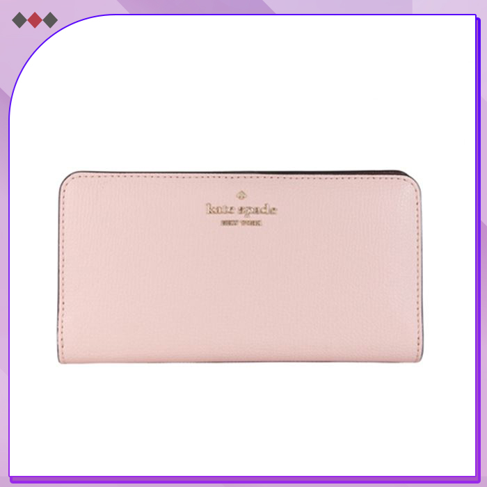 【KATE SPADE】荔枝皮革釦式萬用長夾(粉色)