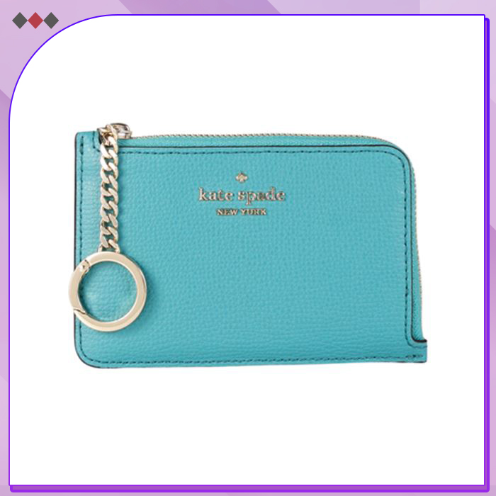 【KATE SPADE】L型拉鍊防刮皮革卡夾證件夾鑰匙圈(石藍)