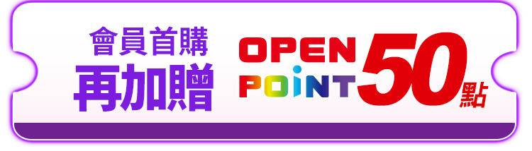 - 活動期間會員首購加贈50點 OPENPOINT點數計算方式:於本活動時間111/3/19 00:00-3/31 23:59首次消費,並完成訂單金額結帳(包含完成線上信用卡支付以及7-ELEVEN實體門市繳費),即可獲得首購回饋OPENPOINT50點,點數將統一於111/4/25前完成入點作業。