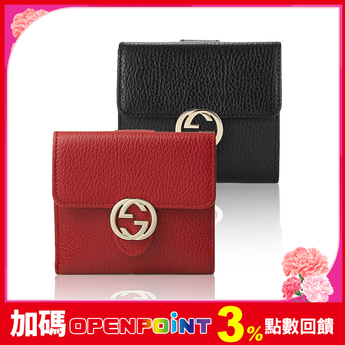 【GUCCI】經典 GG LOGO荔枝牛皮翻蓋短夾(任選)