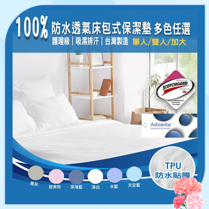 護理級TPU吸濕排汗 100%防水透氣床包式保潔墊-雙人