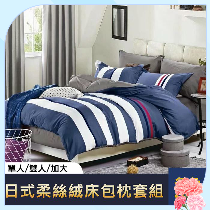 日式柔絲絨床包枕套組(雙人)(多色任選)
