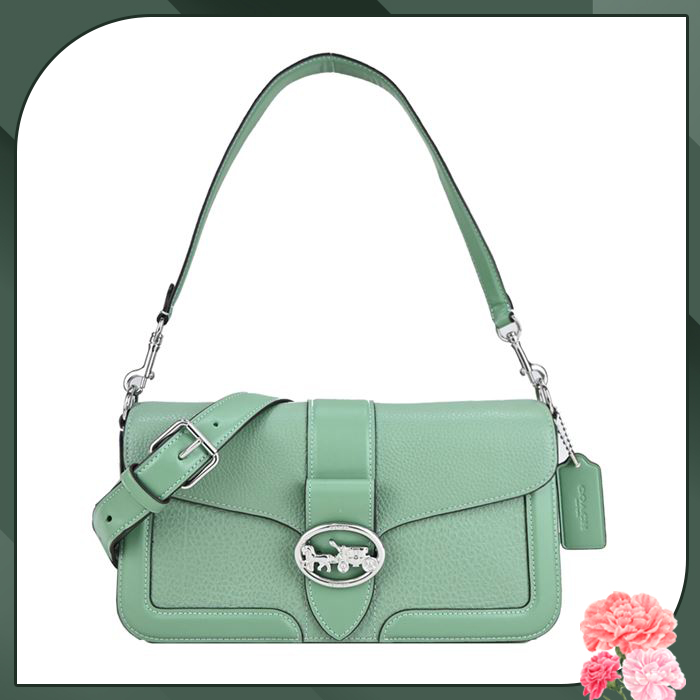 【COACH】GEORGIE素面皮革肩背/斜背兩用酒神包(酪梨綠)