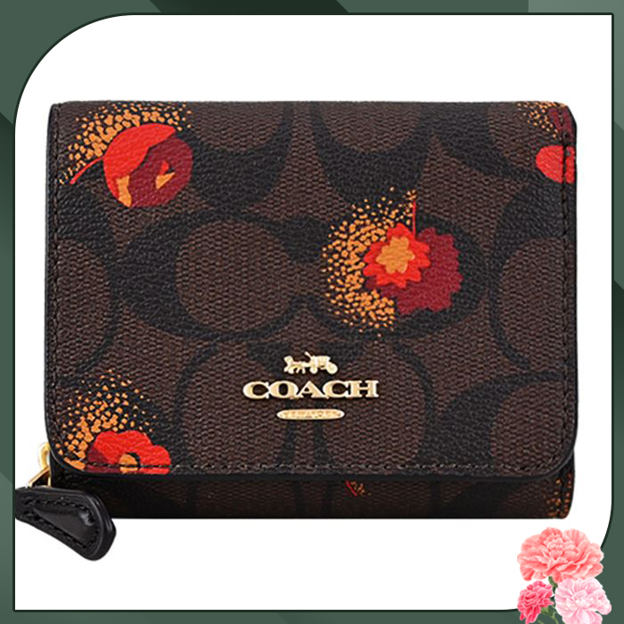 【COACH】立體馬車花卉印花三折短夾(咖啡)