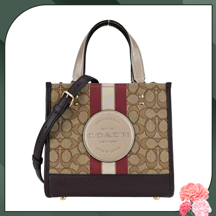 【COACH】圓標直紋織布拼接手提/斜背紙袋兩用包(三色任選)