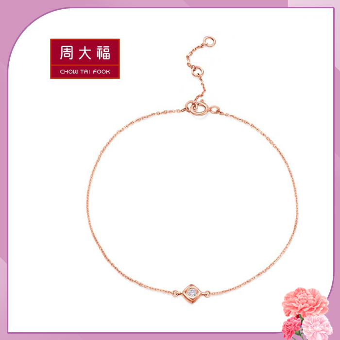 周大福 小點滴系列 菱形造型18K玫瑰金鑽石手鍊