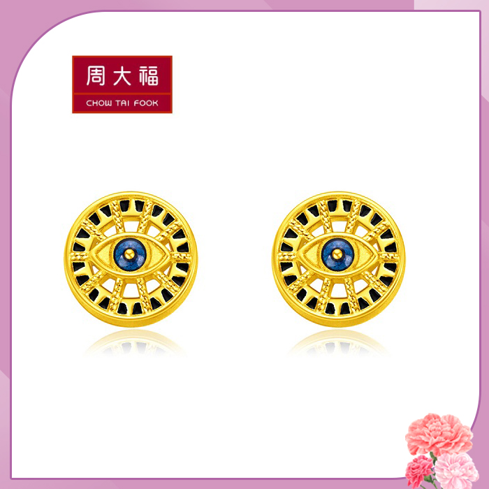 周大福 LIT系列 藍眼圖騰黃金耳環