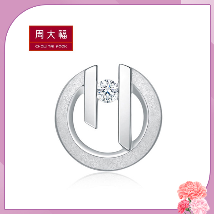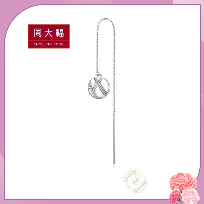 周大福 玄彬925系列 18K白金垂吊式鑽石耳環