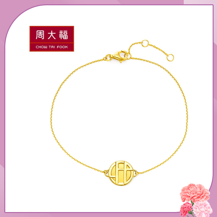 周大福 玄彬925系列 18黃K金LIFE造型手鍊