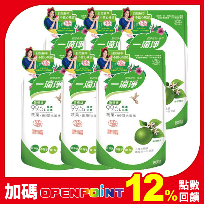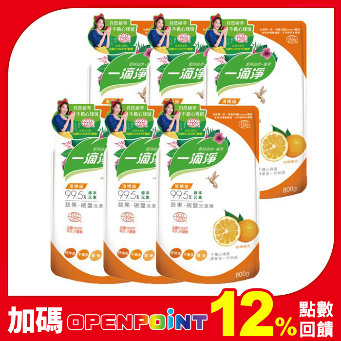 【一滴淨】蘆薈多酚洗碗精補充包800g 箱購6件組(柑橘精油洗碗精)