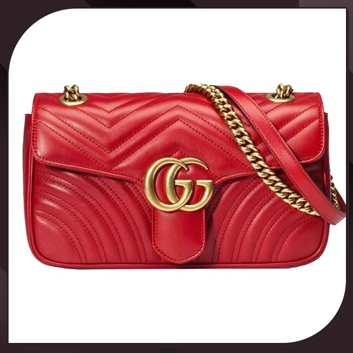 【GUCCI】經典GG LOGO牛皮鏈帶翻蓋斜背包(任選)