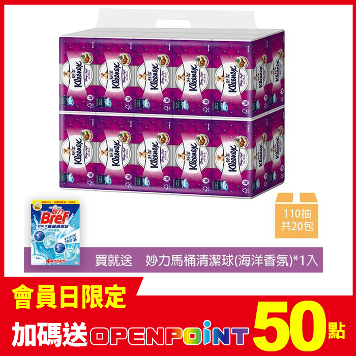 【Kleenex 舒潔】頂級三層抽取式衛生紙 110張x20包+馬桶球*1