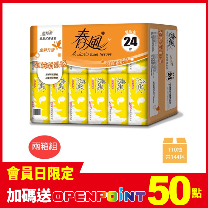 【春風】超細柔抽取式衛生紙 110抽x72包x兩箱組