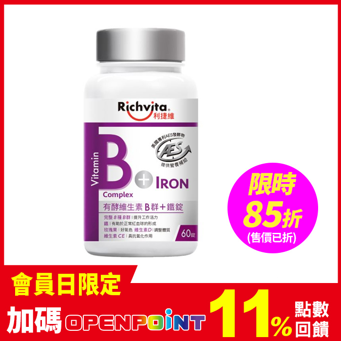 (限時85折,售價已折)利捷維有酵維生素B群+鐵60錠
