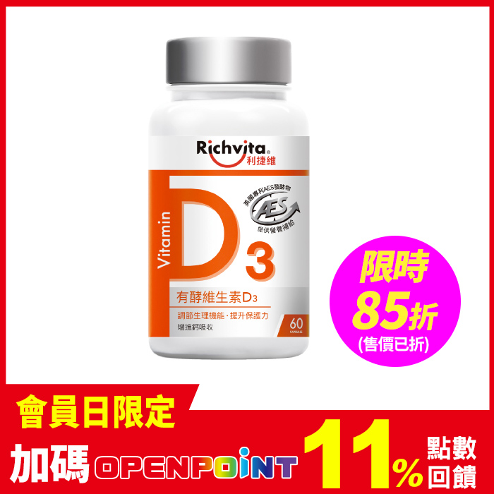 (限時85折,售價已折)利捷維有酵維生素D3 60錠