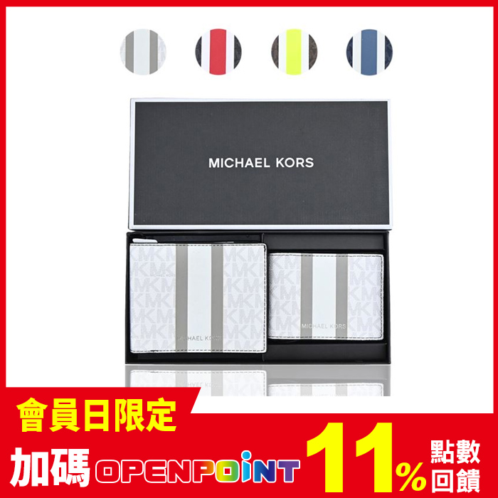 MICHAEL KORS GIFTING直紋滿版短夾(附證件夾)禮盒組(多色選)