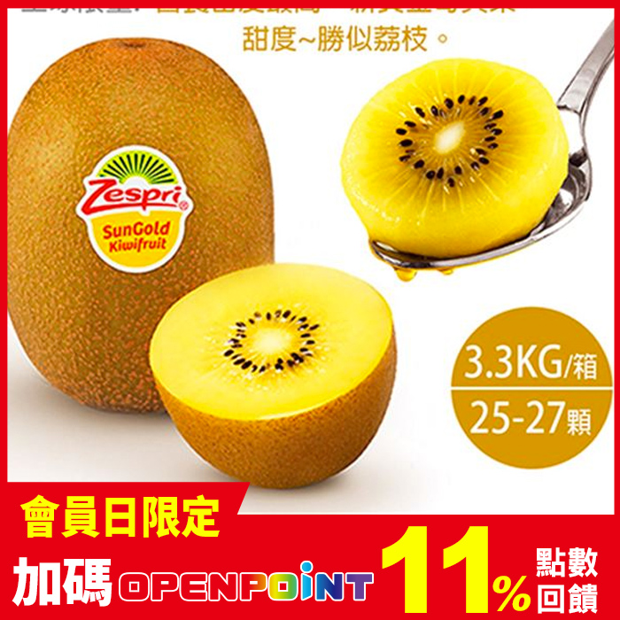 紐西蘭Sungold中大尺寸黃金奇異果原裝箱(3.3kg/箱/25-27顆)
