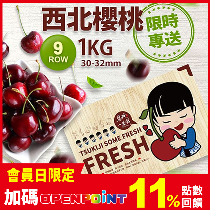 【築地一番鮮】空運9ROW華盛頓西北櫻桃1盒(1kg/禮盒)