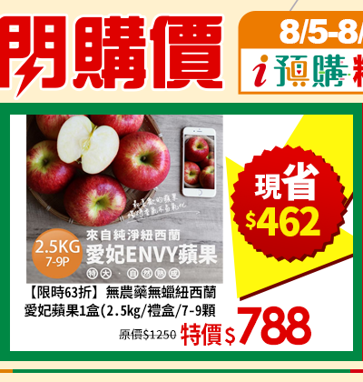 【限時63折】無農藥無蠟紐西蘭愛妃蘋果1盒(2.5kg/禮盒/7-9顆