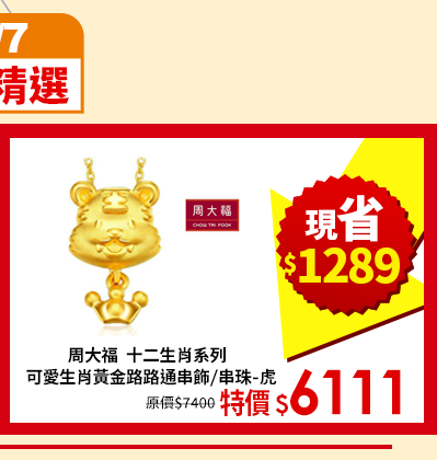 周大福 十二生肖系列 可愛生肖黃金路路通串飾/串珠-虎