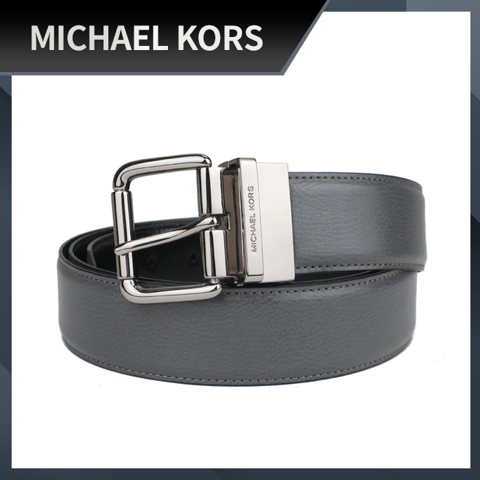 MICHAEL KORS 荔枝紋皮革雙面針扣皮帶-灰黑
