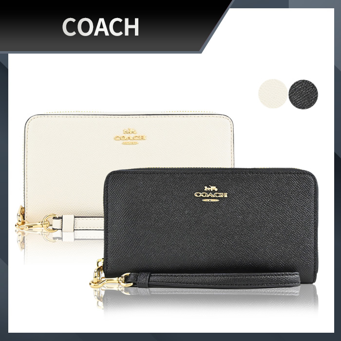 COACH 立體馬車LOGO素面防刮牛皮ㄇ型拉鍊長夾(附手腕帶/任選)