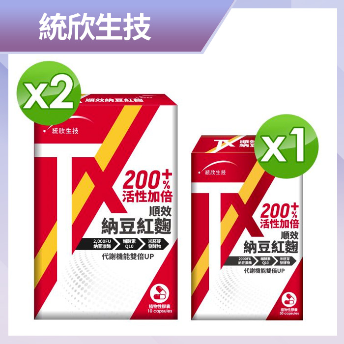 統欣生技TX-順效納豆紅麴膠囊*2+10入裝