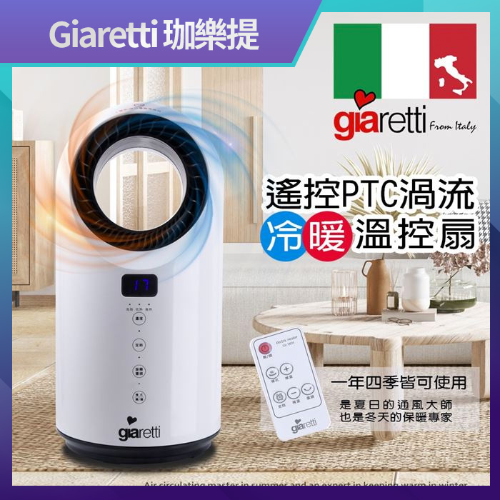 義大利【Giaretti 珈樂提】遙控PTC渦流冷暖溫控扇 GL-1855