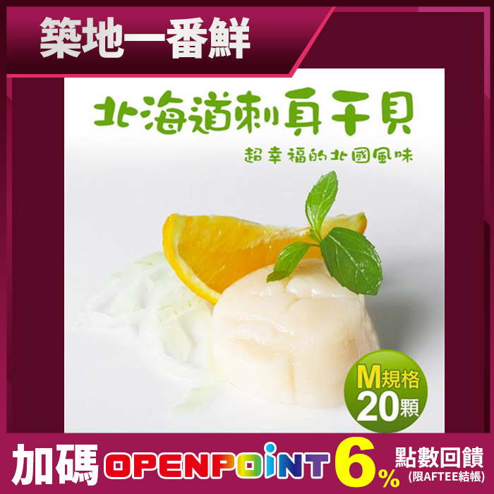 築地一番鮮北海道生食級刺身用大顆M干貝10顆(380g/包)X2包