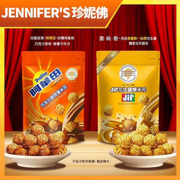 JENNIFER'S 珍妮佛 滾動爆米花-Jif花生醬/阿華田巧克力麥芽風味