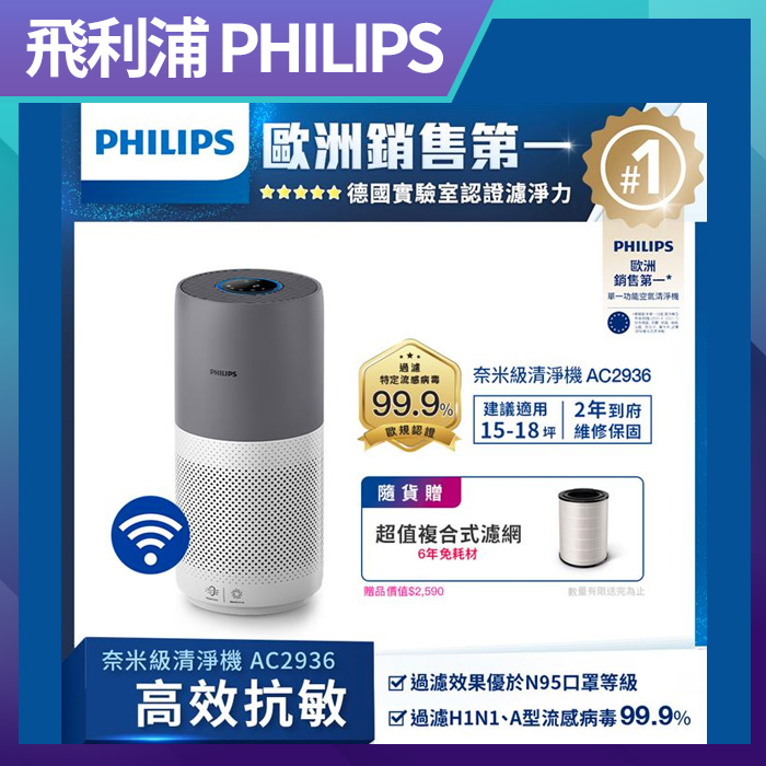 【飛利浦 PHILIPS】奈米級空氣清淨機-AC2936