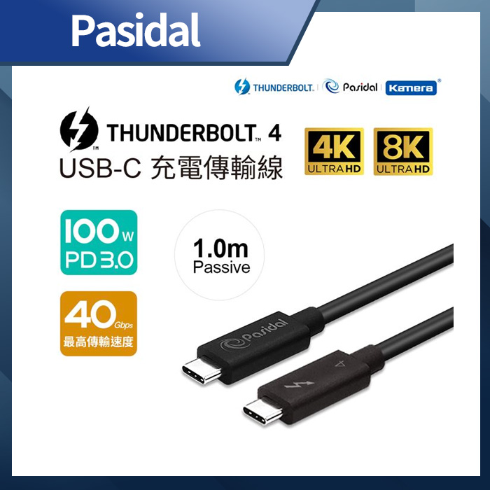 【Pasidal】Thunderbolt 雷電4 雙USB-C 充電傳輸線 Passive-1.0m