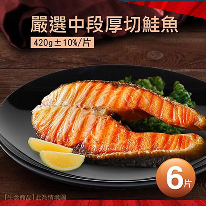 【築地一番鮮】嚴選中段厚切鮭魚6片(420g/片)免運組